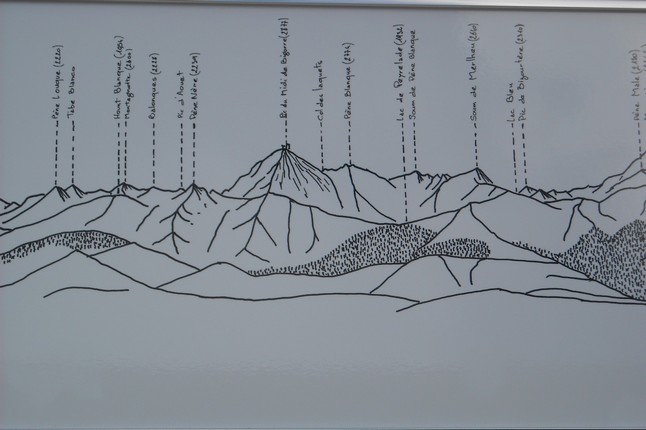 On admire à nouveau le panorama des Pyrénées avec l'indication des pics